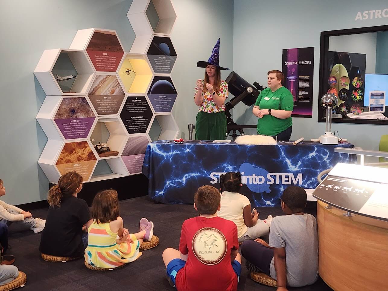 Explore hands-on exhibits, witness thrilling live demonstrations, dive deeper into science with interactive workshops, and journey through the cosmos in our planetarium.